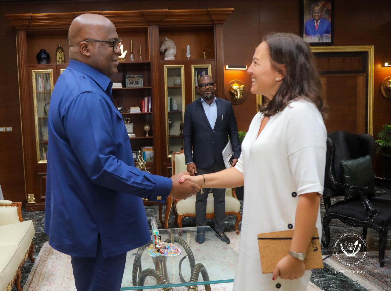 À Kinshasa, le président de la République a reçu, ce jour, à la Cité de l’Union africaine, l’ambassadrice du Royaume de Belgique, Roxane de Bilderling.