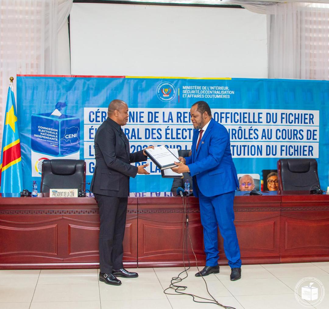 Le président de la Commission électorale nationale indépendante (CENI), Denis Kadima, a procédé, ce jeudi 19 février à Kinshasa, à la remise officielle du fichier électoral à l’Office national d’identification de la population (ONIP).